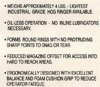 The WHR4 & WHR4C Series for use in upholstering furniture, automotive seat construction, or wherever a round tight ring of a heavy gauge is required. WHR43 & WHR42 Series used in the assembly of removable insulation blankets, animal cages, elastic cord assemblies, etc. The hog rings are formed into a tight double wrapped pattern.